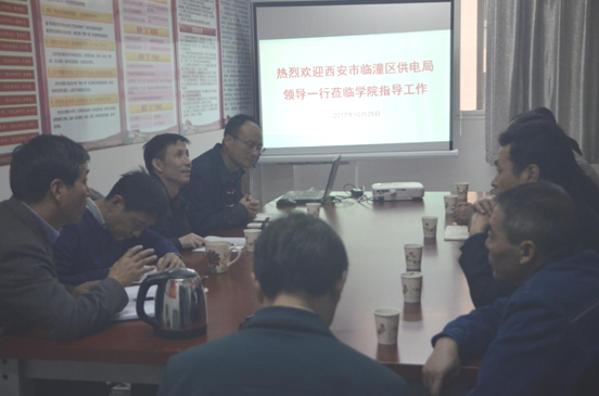 10月25日上午,国家电网西安市临潼区供电公司党委书记王建涛一行到太阳成tyc122cc交流。委书记杨勇、经理付周兴、副经理杜京义、实验中心主任杨建翔、教授赵建文参加交流座谈。杨勇书记首先对王建涛书记一行前来太阳成tyc122cc交流表示欢迎,会上杨勇书记介绍了公司的基本概况,并一同参观了公司电气专业实验室。双方就党建工作、“两学一做”学习教育、员工专业实践培养、创新创业教育工作、电力系统科学研究等方面进行了深入交流,希望以后继续加强合作。
