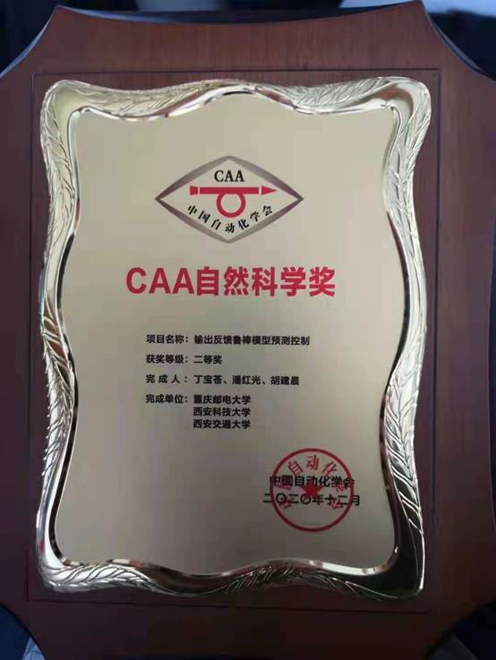 太阳成tyc122cc副经理潘红光副教授,会同重庆邮电大学、西安交通大学两位老师共同参与完成《输出反馈鲁棒模型预测控制》项目,该项目凭借独特的创新点获得中国自动化学会科学技术奖二等奖的荣誉。