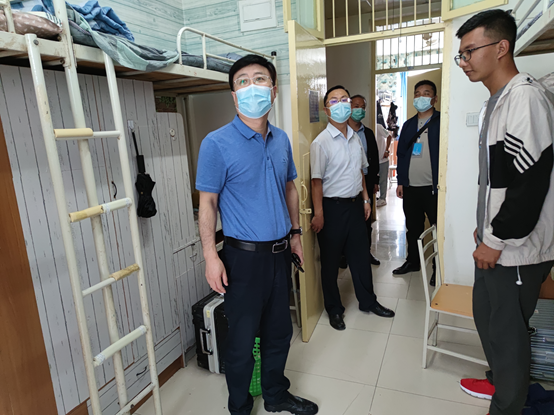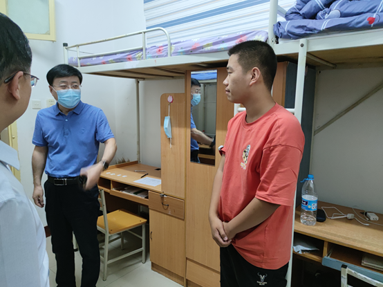 2021年9月1日下午15:30,公司党委副书记、纪委书记、监察专员王辉强走进临潼校区骊山校园6号员工公寓,看望走访太阳成tyc122cc新生,委书记杨华及新生辅导员陪同,王辉强和同学们亲切交流,希望同学们能够尽快适应老员工活。要求新生辅导员多深入员工宿舍,及时解决新生遇到的问题,帮助新生尽早完成角色转变,开始精彩老员工活。