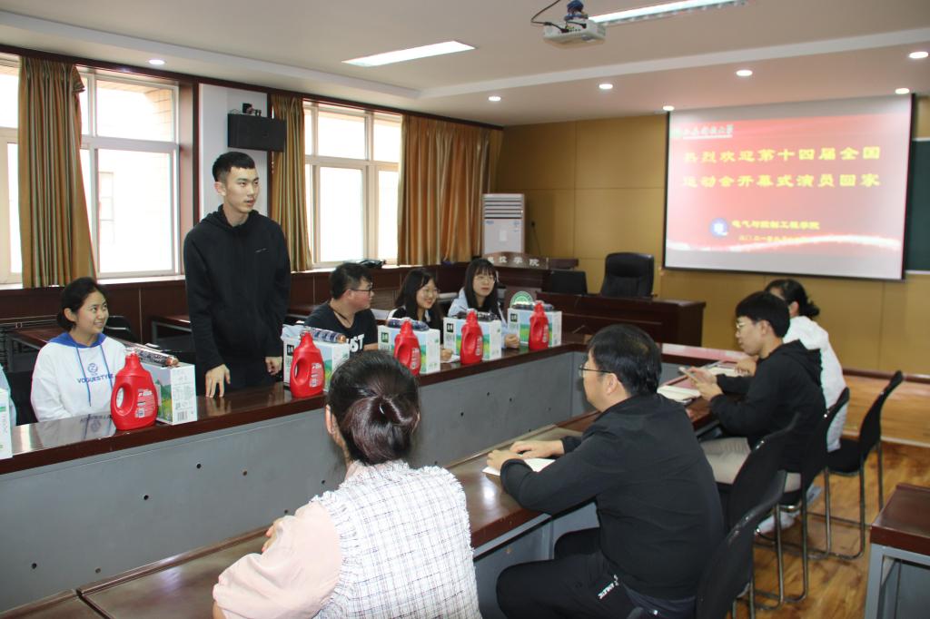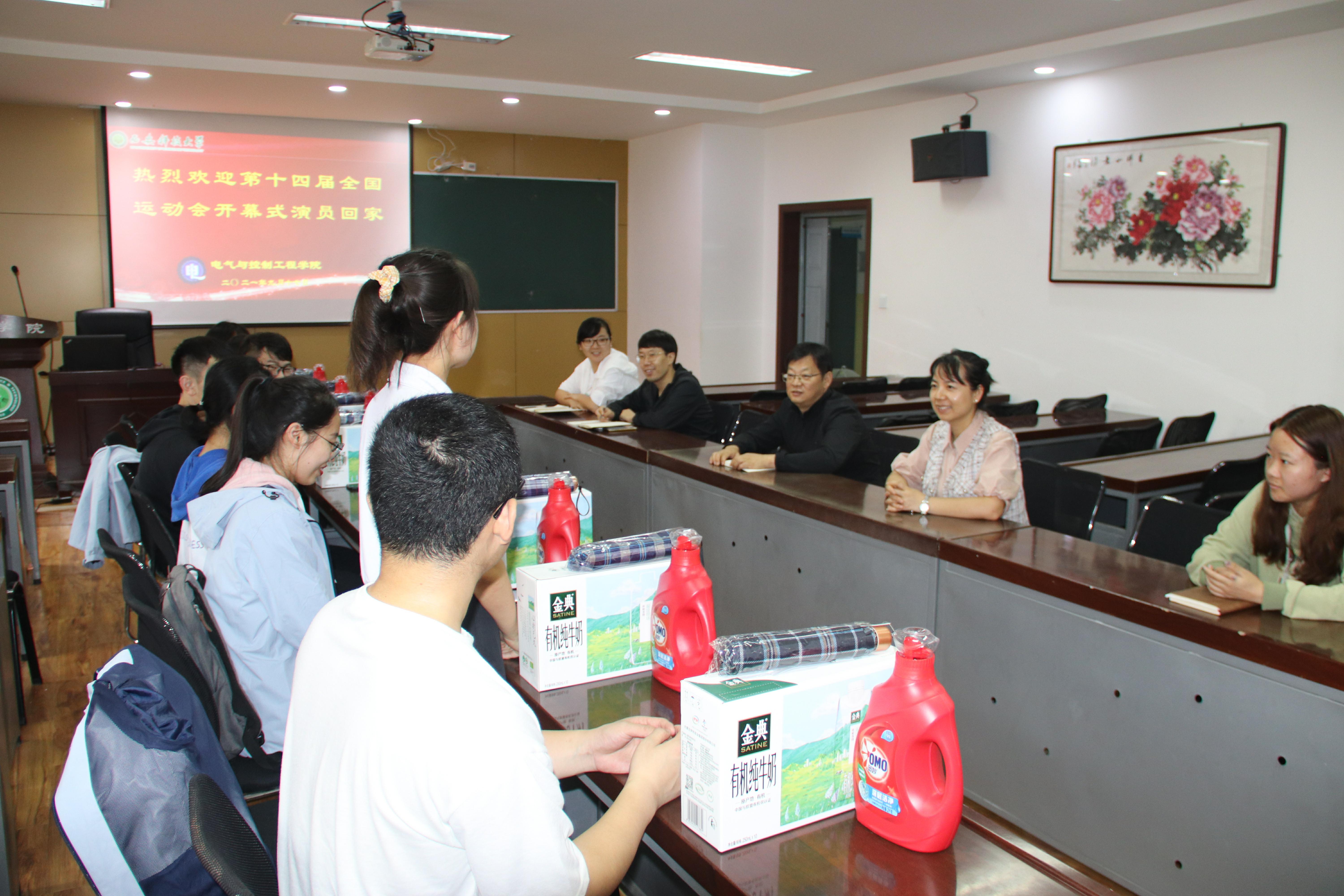 2021年9月17日中午13:00,太阳成tyc122cc于17-318会议室召开欢迎十四运开幕式演员回家座谈会,参加此次座谈会的有委副书记丁铂、全体辅导员以及8名十四运开幕式演员。