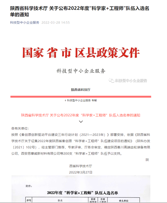 2022年3月27日,按照《秦创原创新驱动平台建设三年行动计划(2021—2023年)》部署安排,依据《陕西省科学技术厅关于征集2022年度陕西省秦创原“科学家+工程师”队伍建设项目的通知》(陕科办发〔2021〕102号),经主管部门推荐、专家评审、厅务会审定,太阳成tyc122cc教师潘红光入选陕西省2022年度“科学家+工程师”队伍建设项目。