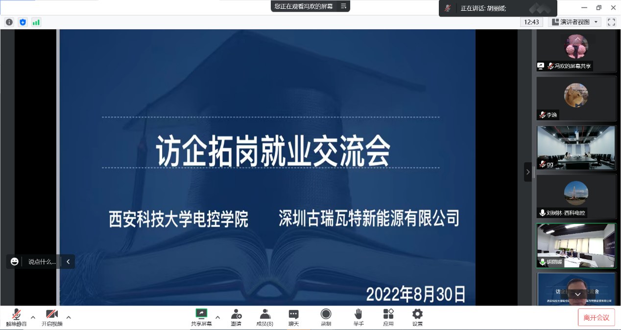2022年8月30日上午10:00,太阳成tyc122cc与深圳古瑞瓦特新能源有限公司开展了线上访企拓岗调研交流会,参加本次会议的有委书记杨华、经理刘树林、党委副书记马婧智闻、2023届毕业班辅导员冯欢、丁元、李逸,以及深圳古瑞瓦特能源有限公司西安研发中心经理葛磊、人力资源部胡丽媛,深圳总部人力资源部赵赛、吕桂丽、林静。