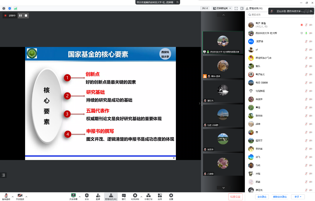 杜光辉教授通过国家基金的核心要素以及申报书的撰写要点,对2018年申报获批的青年项目“PRC低温余热发电用叶轮转子一体化高速永磁电机特性研究”为例,从核心要素、想法来源、项目名称、科学问题属性、摘要、立项依据、研究内容等方面对基金申报书进行了全面剖析。