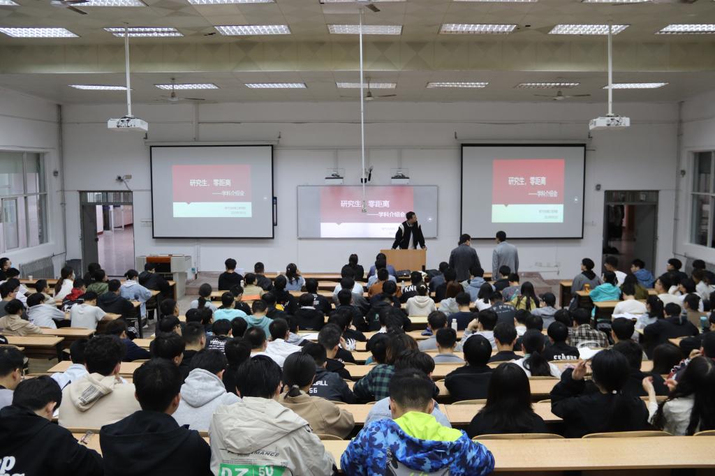 潘红光向同学们详细地分析了当前考研形势,并根据2023届毕业生的考研情况以及往年的研究生初试分数线与分数区间,对同学们的考研目标设立提出了切实可行的建议。随后介绍了考研的整体流程,为大家分析了近几年以来的考研报名人数、录取比例的变化趋势,初试复试上线的本校生源情况、高校毕业生毕业去向以及发展情况、研究生毕业就业情况,为大家分析了报考本校研究生的优势,和公司的考试范围,积极鼓励大家报考本校研究生。