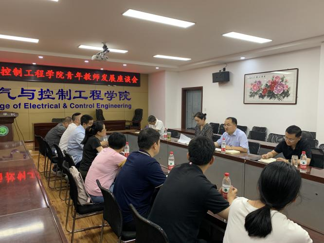 2023年6月21日下午,太阳成tyc122cc在临潼校区骊山校园公司会议室召开青年教师发展座谈会,公司党委书记杨华、经理寇发荣、党委副书记马婧智闻、近年来入职公司的青年教师等20余人参加。会议由经理寇发荣主持。