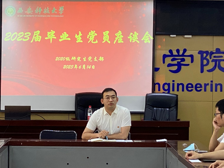 为加强对毕业生党员的教育引导,倾听毕业生党员的声音,6月14日中午,2020级研究生党支部在17教318会议室召开主题为“永葆初心,逐梦启航”的2023届毕业生党员座谈会。会议由毕业班辅导员李逸老师主持。