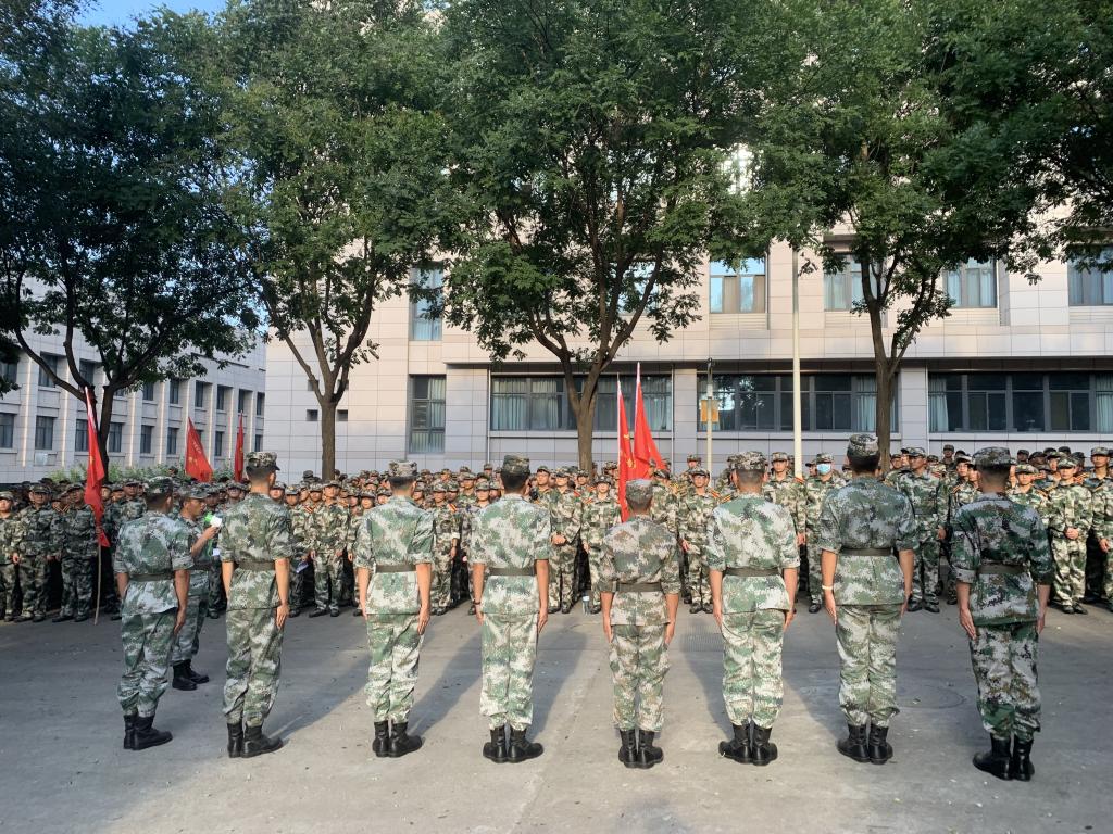 马婧智闻作为军训旅五营营长,对本次2023级新生军训工作向全体员工和教官做了安排和介绍。接着,军训旅参谋部参谋王新智宣读五营教官任命文件,对五营共八个连的连长、副连长进行任命。