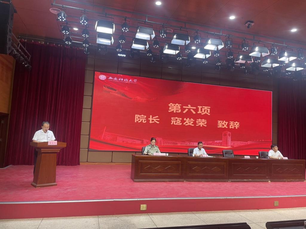 大会第二项,党委书记杨华致欢迎词,向2023级新生的到来表示热烈的欢迎!同时希望2023级新生在新起点能够做到:自信自强、守正创新、踔厉奋发、勇毅前行,珍惜时光、不负韶华,在美丽的西科度过人生最美的青春岁月。