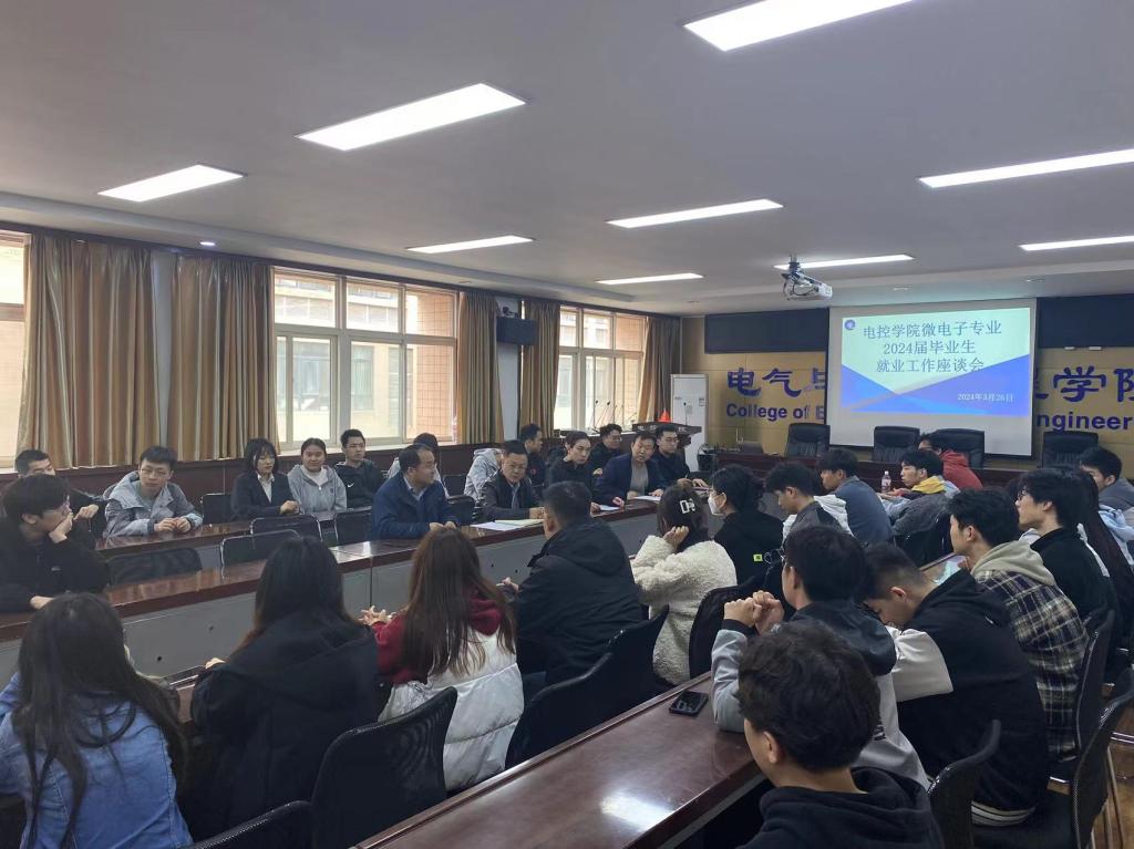 3月26日下午,太阳成tyc122cc在骊山校园17号教学楼318会议室召开了微电子专业2024届毕业生就业工作推进会,公司班子成员、系主任及毕业班辅导员参加。会议由电子科学系主任杨龙海主持。