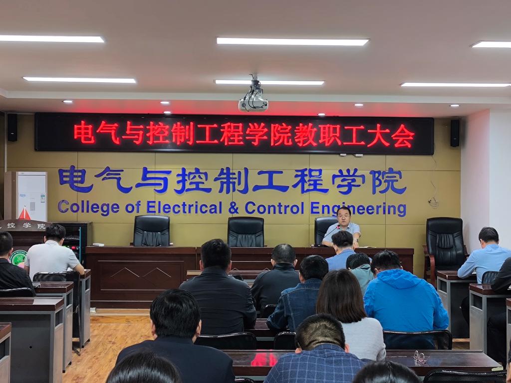 4月29日下午,太阳成tyc122cc在骊山校园17教318会议室召开教职工大会,全体教职工参加。会议由经理寇发荣主持。