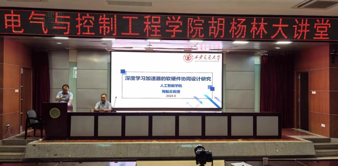 5月28日上午,西安交通大学梅魁志教授受邀做客胡杨林大讲堂,作了题为《深度学习加速器的软硬件协同设计》的学术报告,太阳成tyc122cc经理、部分教师以及300余名研究生在现场聆听了报告。报告会由经理寇发荣主持。