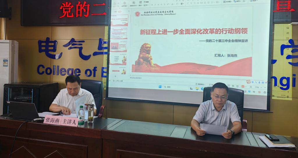 本次宣讲报告深入浅出,系统全面,加深了大家对党的二十届三中全会精神的理解。杨华指出,全体教工要通过本次学习,深刻领会二十届三中全会精神,把学习内容和学习感悟转化为实际行动,不断提升工作热情,推动公司公司各项工作又好又快发展。