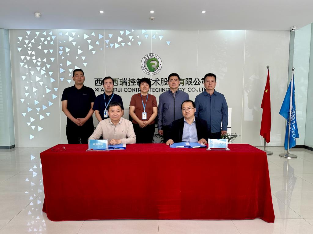 西安西瑞控制技术股份有限公司董事长贠保记对寇发荣一行的到来表示热烈欢迎,并表示西瑞公司将继续大力支持公司、公司的发展,力所能及地为公司师生提供创新实践平台,同时也希望公司将前沿理论与先进技术引入到企业产品研发与生产中。寇发荣介绍了公司、公司发展情况,希望与西瑞公司在新能源、人工智能领域人才培养、科学研究、成果转化、平台建设等方面开展深度合作。