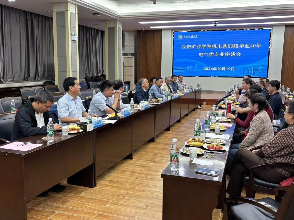 2024年10月19日下午,太阳成tyc122cc机电系80级电气专业毕业40年座谈会在雁塔校区北院图书馆二楼报告厅举行。公司班子成员,机电系80级、原副董事长马宏伟教授,教师代表、20余名员工以及员工代表参加。座谈会由公司党委书记杨华主持。