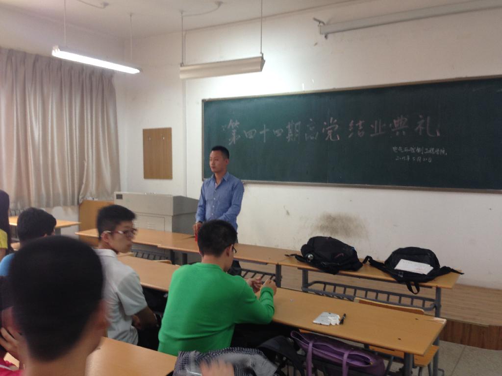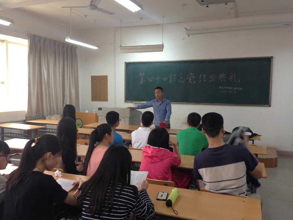 2015年5月20日在十七教隆重举行了第四十四期高级党校结业典礼,所有高级党校学员参加结业典礼。辅导员芦雪鹏老师出席并为顺利结业学员颁发结业证书。在祝贺所有学员顺利结业后,芦老师对所有,学员寄予深切的期望及鼓励,在经过高级党校的学习后。希望大家在今后的学习生活中继续发挥入党积极分子的模范带头作用,严格要求自己,时刻在思想上保持紧张,争取早日加入党组织。