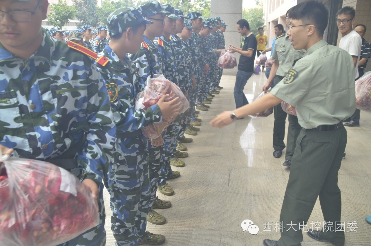 随后公司领导老师还为各位新生,教官发放了月饼,祝大家中秋快乐。本次慰问活动不仅鼓舞了同学们的士气,昂扬了训练的斗志,更让2016级全体新生感受到了公司领导的关怀和殷切期望。