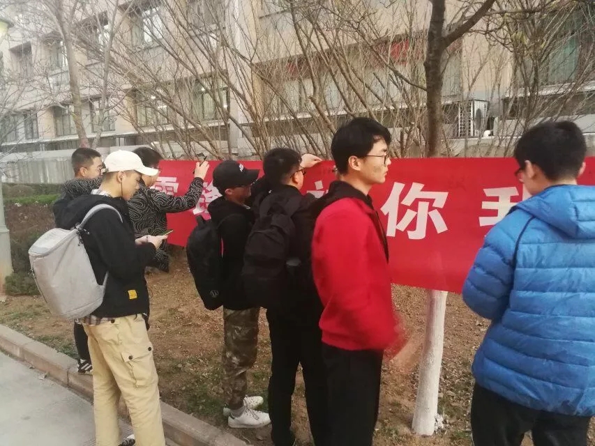 老师同学们在横幅上留下了自己的名字。