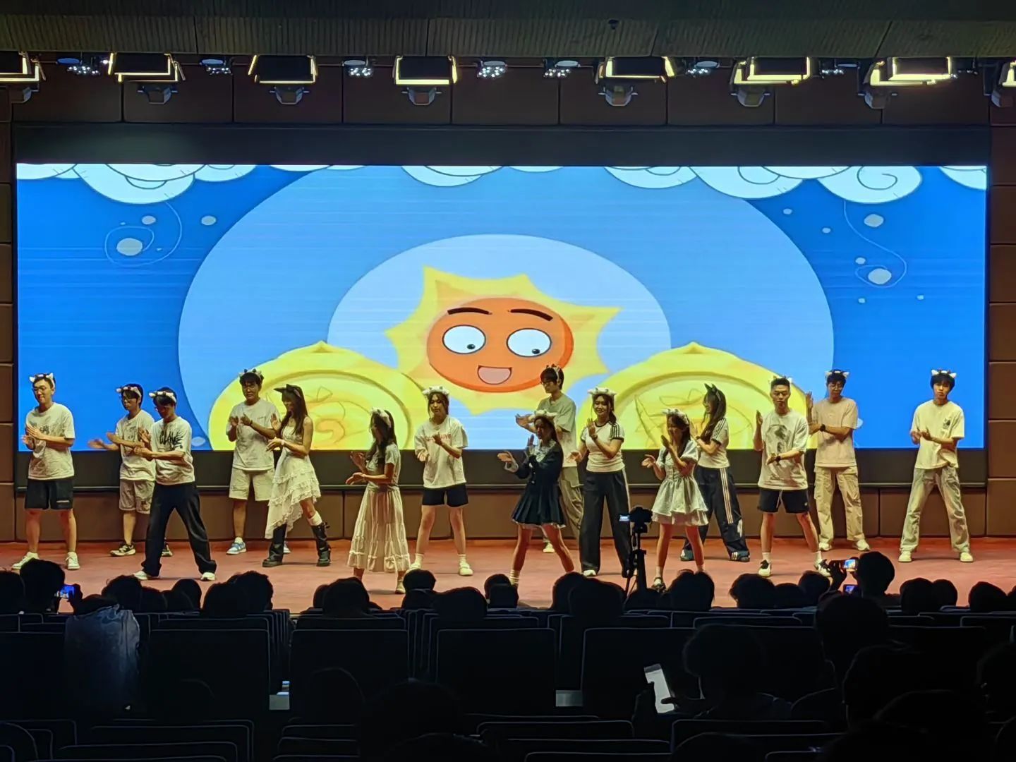 此外,不少表演还巧妙融入创新元素。有的节目结合专业特色,将科技与艺术巧妙融合,展现出独特的创意;有的则采用新颖的表演形式,通过情景短剧与光影特效,带领观众沉浸式感受老员工活的美好。同学们用丰富的想象力与精湛的舞台表现力,为现场观众带来了一场场惊喜,充分彰显出新时代青年的创新精神与团队协作能力。