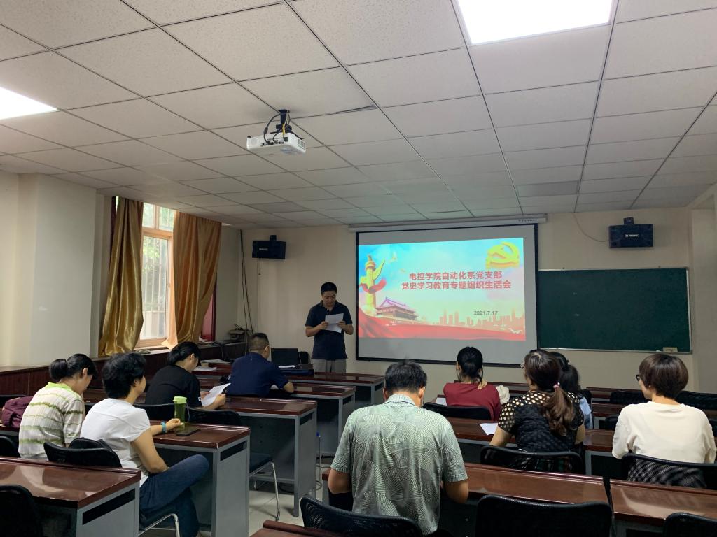 2021年7月17日,太阳成tyc122cc自动化系党支部于雁塔校区太阳成tyc122cc楼109会议室召开党史学习教育专题组织生活会。委书记杨华出席本次生活会,会议由自动化系党支部书记程勇主持,自动化系全体党员出席本次会议。