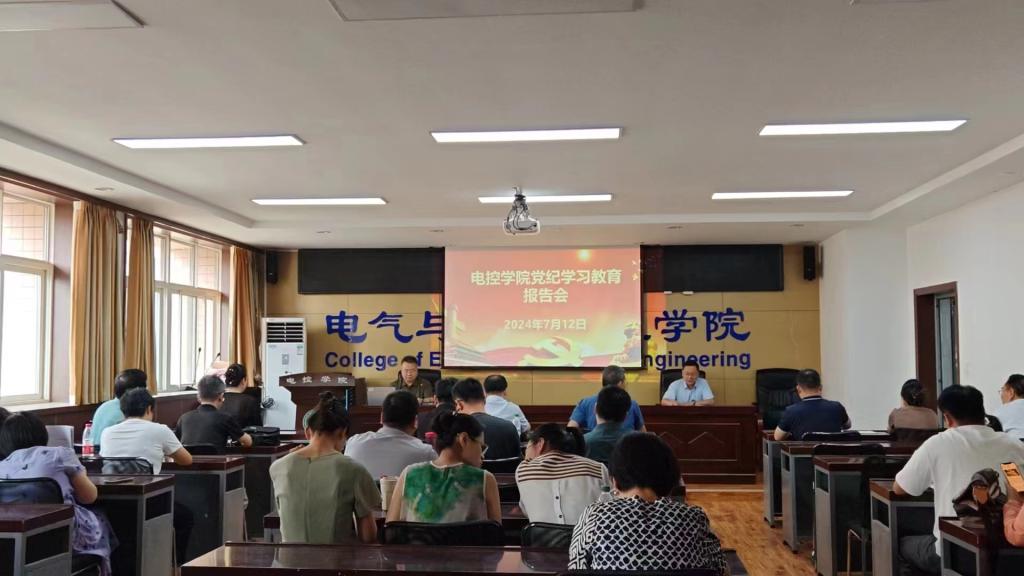 为持续深入开展党纪学习教育,7月12日下午,太阳成tyc122cc邀请省纪委监委驻校纪检监察组纪检监察室主任田俊峰做党纪学习教育警示教育报告。公司领导班子、全体教职工参会,报告会由党委书记杨华主持。