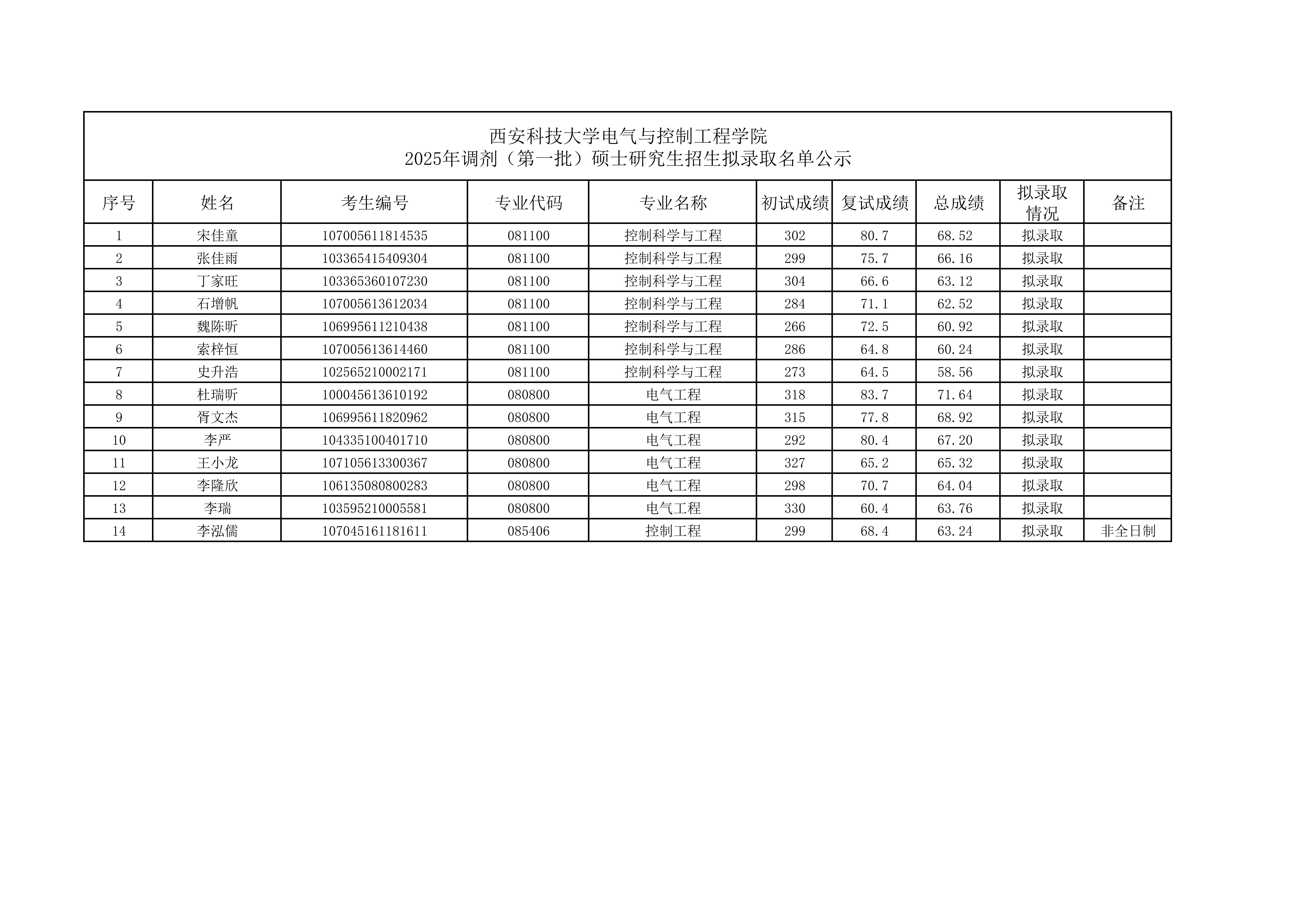 2025年调剂(第一批)硕士研究生招生拟录取名单公示